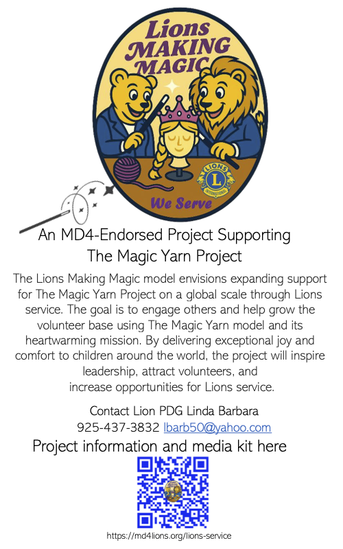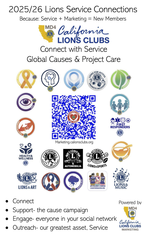 Multiple District Four California Lions Lions Service PDF versions of the Flyers connect with serviceEnvironmental GK and Lions for accessLions Making Magicnew service weeks initiative 25-26 info flyer officialService Project Care Calendar 2025-2026